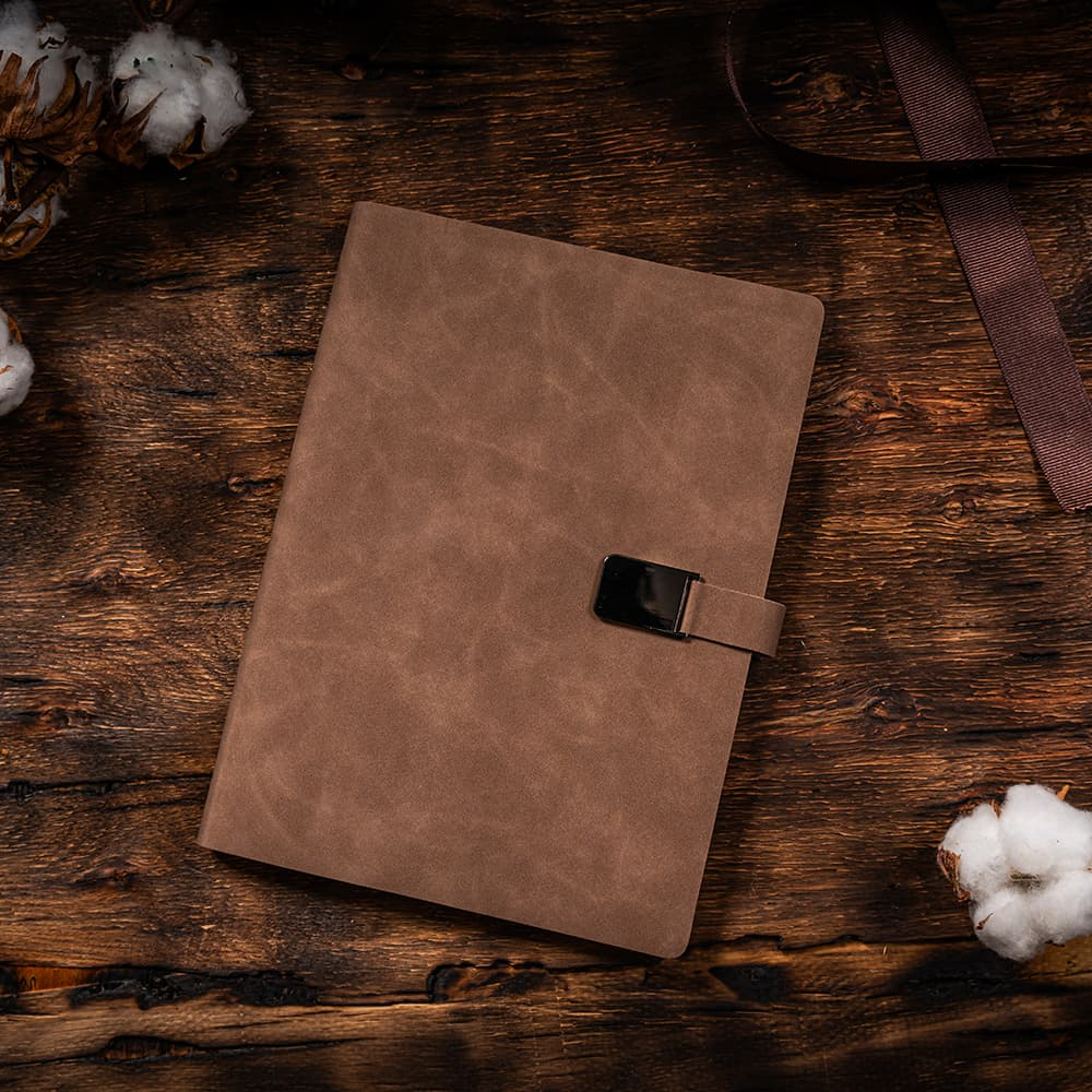 Coperta flexibila din piele PU dubla fata inchisa cu clapa metalica si magnet.