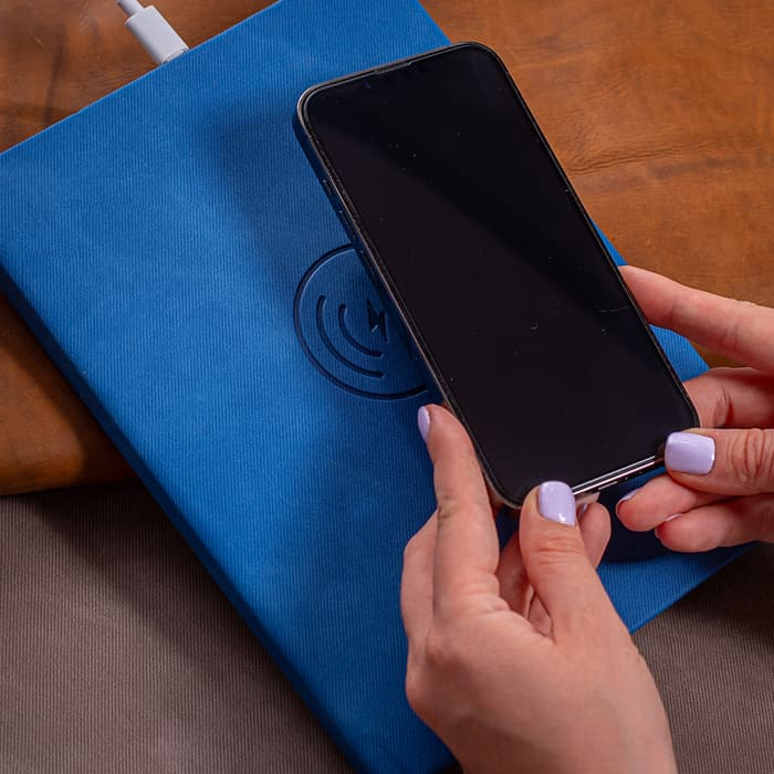 Coperta tare din piele PU texturata cu incarcator rapid wirelles 15W (compatibil si cu 10W, 7.5W, 5W) incorporat si cablu de conectare USB.