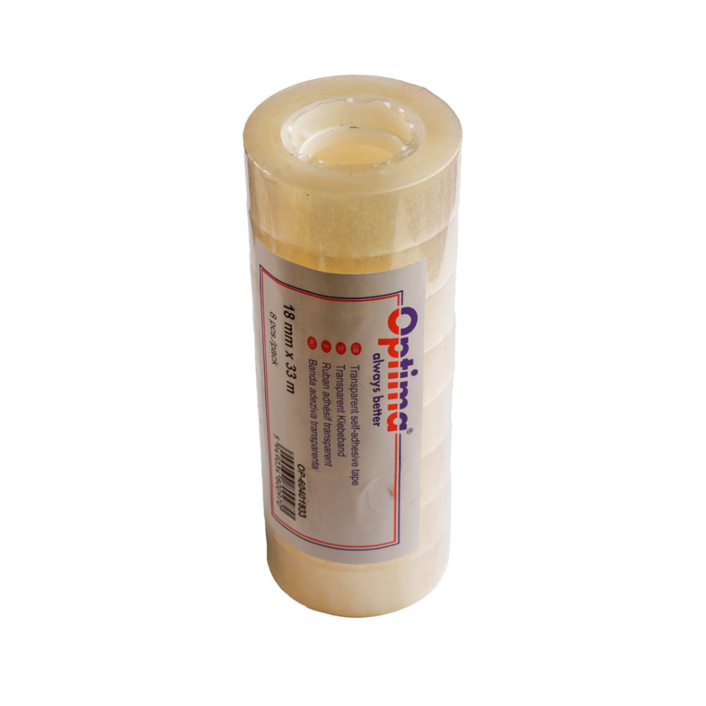 Banda adeziva 18mm x 33 m, 40 microni, 8 role/set, Optima - transparent