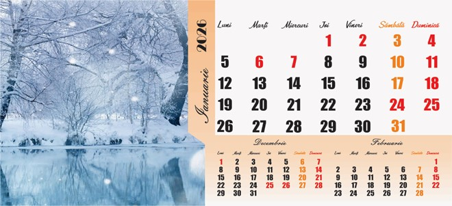 FORMAT - 20.5 x 14 cm NUMAR FILE - 6 file - 3 luni/coala HARTIE - Dublu cretat lucios 170 g/mp,, suport carton duplex 400g/mp Tipar policromiefata/verso FINISARE-Spiră metalică albă PERSONALIZARE CAPAC - 20.5 x 3 cm (format maxim imprimat)