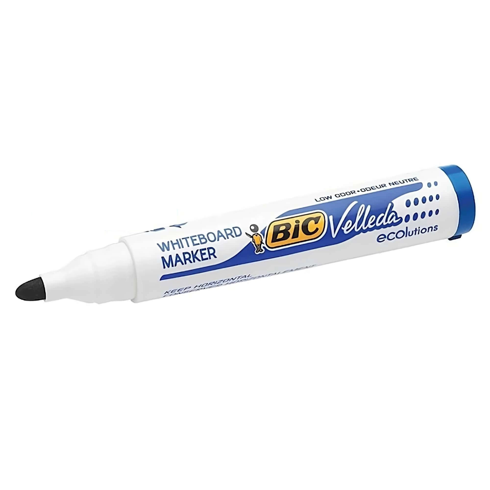 Markerul BIC Velleda 1701 este un instrument de scris de inalta calitate, ideal pentru utilizarea pe table albe, oferind scriere clara si usor de sters. Marker pentru whiteboard de culoare albastra cu varf rotund. Grosime scriere: 2.5 mm. Cerneala pe baza de alcool, cu miros redus. Se sterge usor, chiar si dupa cateva zile, fara a lasa urme. Material corp din plastic rezistent, durabil. Lungime marker de aproximativ 14 cm. Diametru corp: aproximativ 14 mm. Varf rezistent, care nu se deformeaza si nu se retrage la presiune. Capac ventilat pentru siguranta sporita. Design ergonomic pentru o prindere confortabila. Fabricat din 51% materiale reciclate (fara a include sistemul de cerneala). Rezervor de cerneala mare, pentru utilizare indelungata. Potrivit pentru scriere pe table albe, sticla si alte suprafete netede. Ideal pentru birouri, scoli, universitati, sali de conferinte si prezentari.