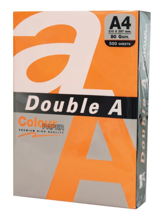 # Hartia de copiator Double A de calitate superioara, a aparut in anul 2000 si a fost prima hartie de copiator de marca pentru consumatori si principala marca din Thailanda timp de 10 ani consecutiv, datorita calitatii sale si a unui program de comunicare de marketing constant si inovativ: „Fara blocaje de hartie … Fara stres”. # Rezultatul a peste 25 de ani de cercetare si dezvoltare, arborele de eucalipt hibrid al Double A, care creste rapid si este compatibil cu conditiile solului si conditiilor climatice, este cunoscut astazi sub numele de arborele de Hartie Double A. # A fost plantat pana in prezent pe parcele nefolosite de peste 1.5 milioane de agricultori la nivel national, prin programul „Hartie din Arborii Plantati” sau HAP. # Continutul ridicat de fibre al arborilor (30 milioane fibre per grame) este o caracteristica unica ce face ca Double A sa aiba: suprafat neteda; densitate ridicata; opacitate ridicata; continut scazut de cenusa. # Hartie pentru copiator/copiatoare, fax/faxuri, imprimanta/imprimante inkjet/laser. # Format: A4. # Gramaj: 80 gr/mp. # Ambalare: 500 coli/top. # Culoare: saffron.