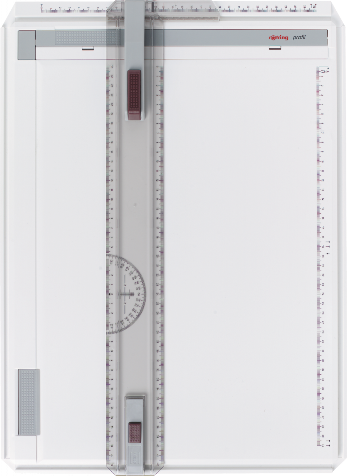 Viteza, precizie si usurinta in utilizare. Design ergonomic. Se poate inclina. Teu gradat cu dispozitiv STOP-and-GO si raportor. Ghidaj lateral prindere teu cu sina dubla si rigla gradata. Planseta pentru formate pana la A3. Culorile produselor pot diferi in realitate fata de cele din imaginile prezentate.