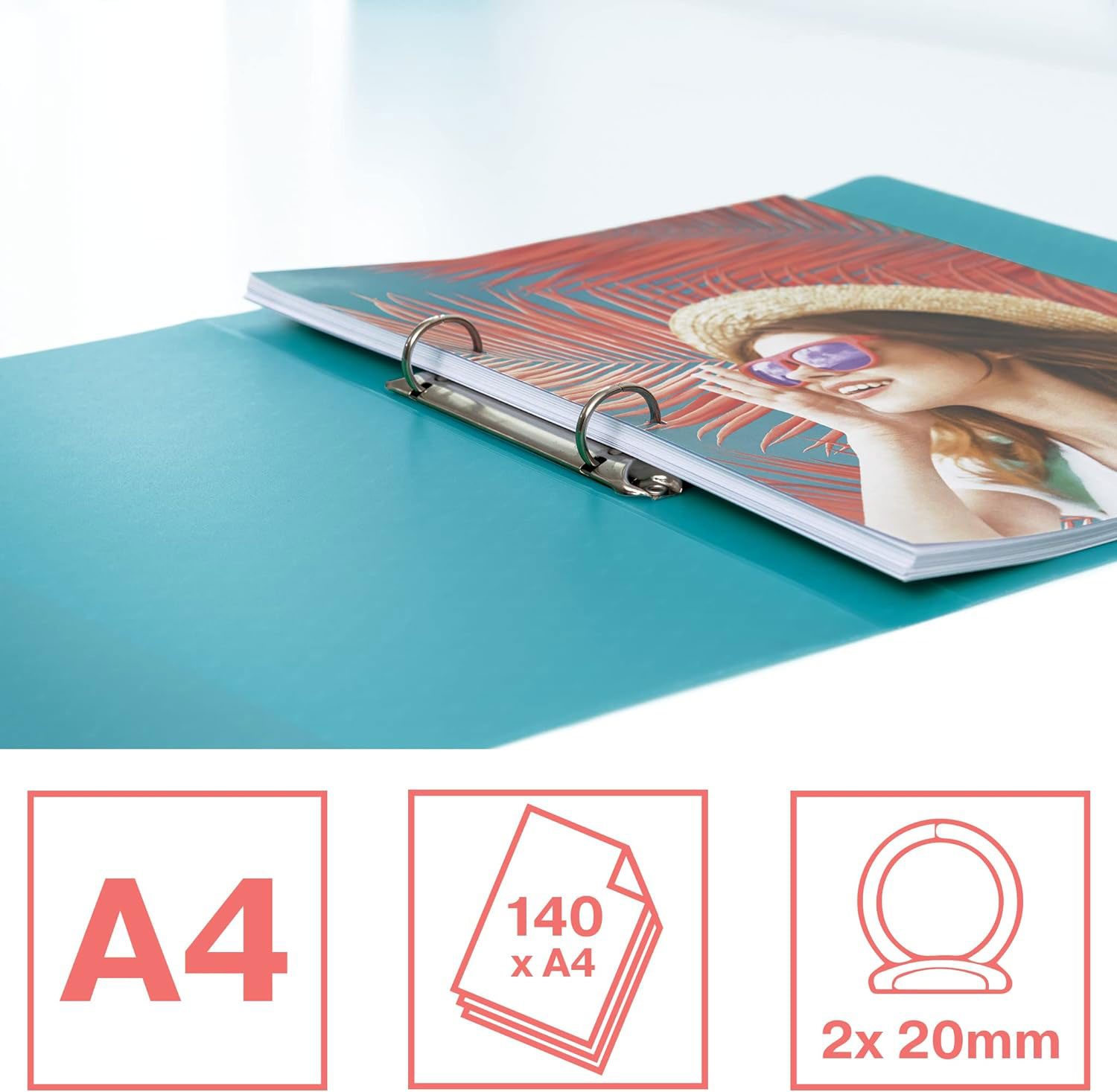 Indosariere cu 2 inele A4 eleganta si durabila, ideala pentru a va organiza toate documentele A4. Mecanism standard cu 2 inele rotunde pentru clasarea si arhivarea rapida si usoara a documentelor. Latimea cotorului de 25 mm pentru a sustine pana la 140 de coli de hartie (80gsm), cu o eticheta autoadeziva pe spate pentru a identifica clar continutul. Caiet mecanic din polipropilena translucida, finisat in modelul proaspat si modern Colour'Breeze in relief.