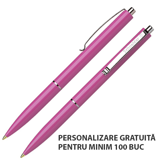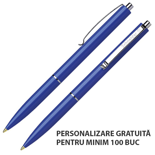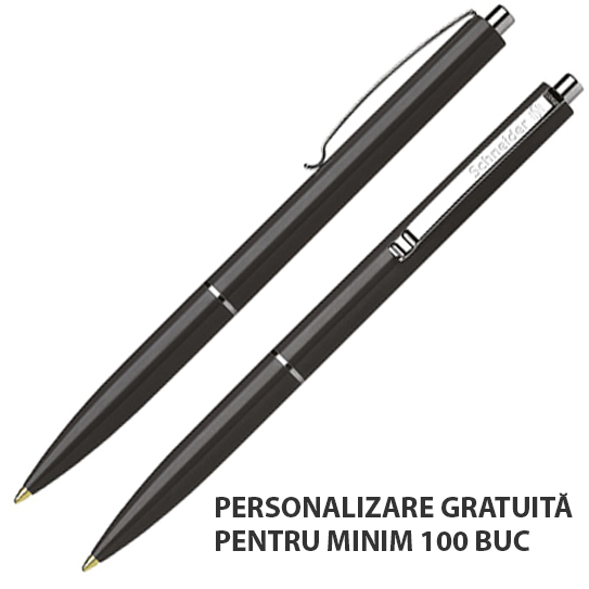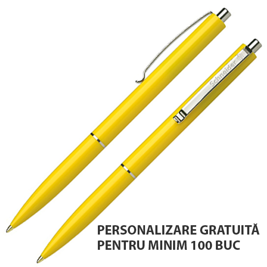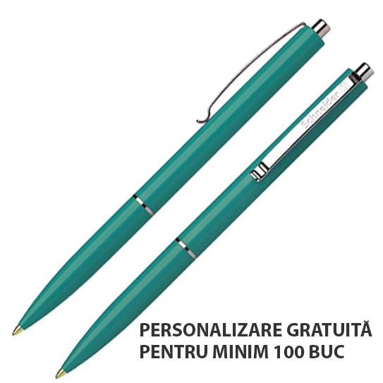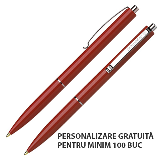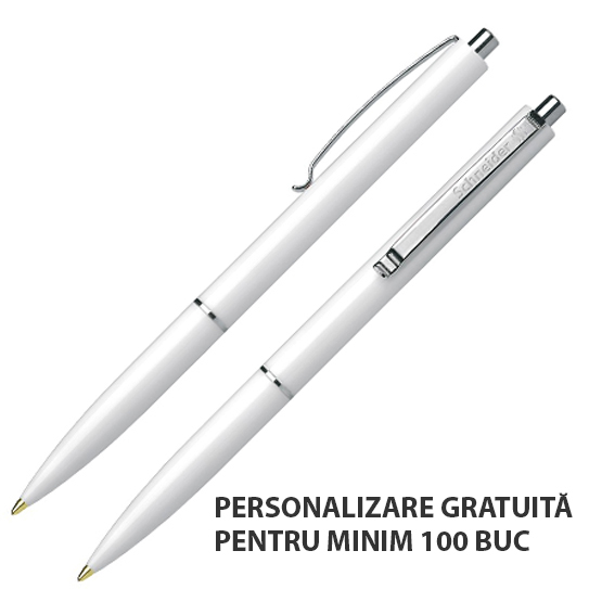 Corp din plastic, cu clemã, inel și buton din metal nichelat. Este echipat cu rezervã Schneider cu vârf rezistent, din oțel inoxidabil.