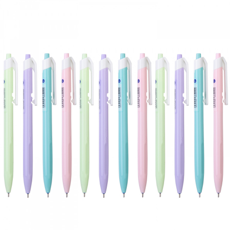 Pix cu mecanism, 0.7mm, cerneala albastra, vascozitate redusa pentru scriere lina, nu curge. Culori asortate pastel.